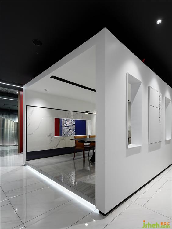 打破传统去套路化,从设计的角度设计师思维化去展示产品,摒弃了传统陶瓷展厅里的固定模式。去伪存真让产品本身更加直接示人,同时也要能体现当下客户多元化的消费需求。将摩登时尚的元素引入空间中,此时展厅不过是展示产品的容器罢了,让产品散发出本真的魅力。