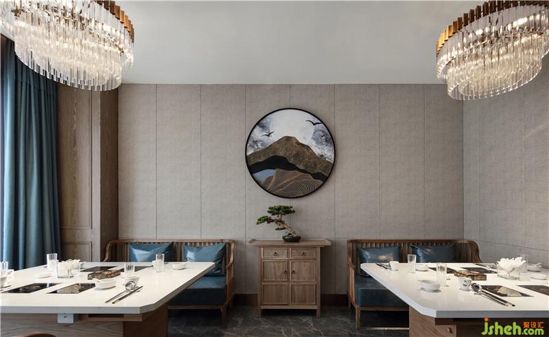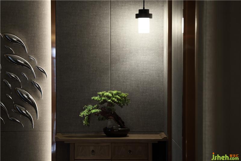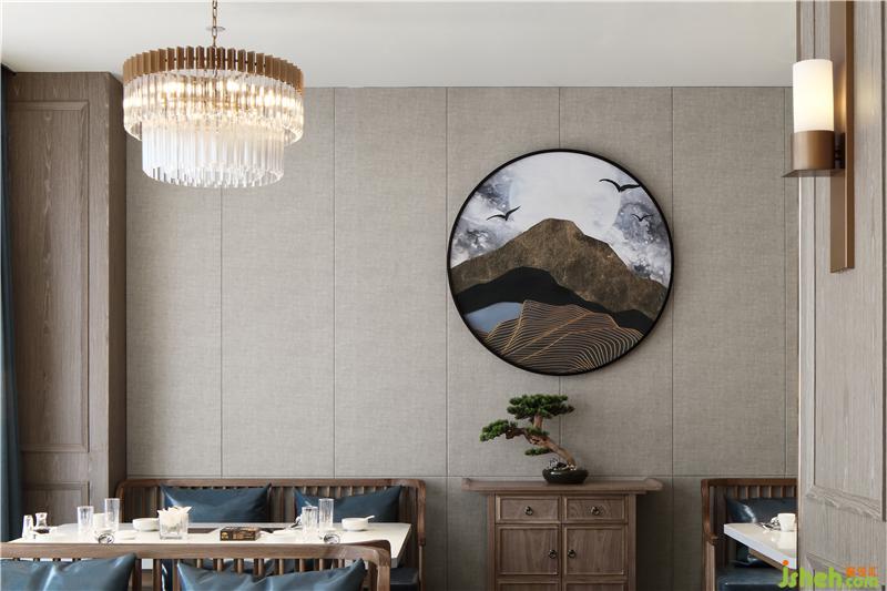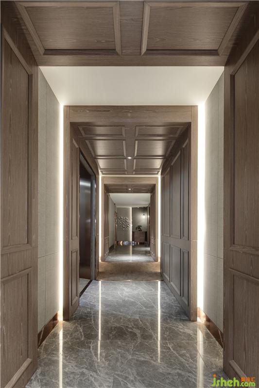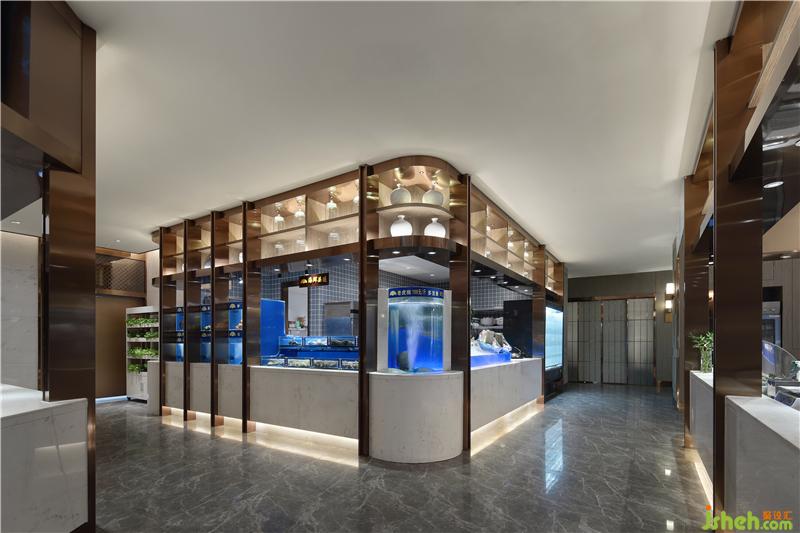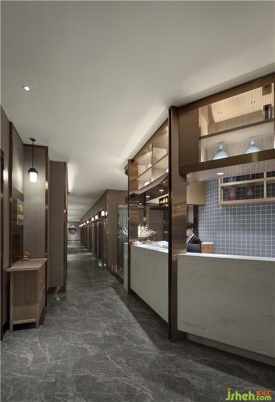 选材:秋香木饰面,古铜色不锈钢,仿大理石瓷砖