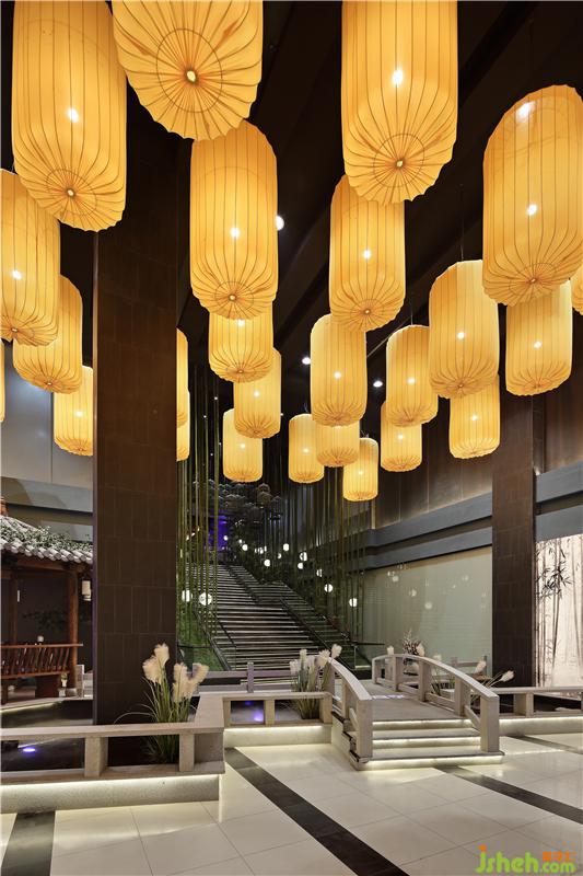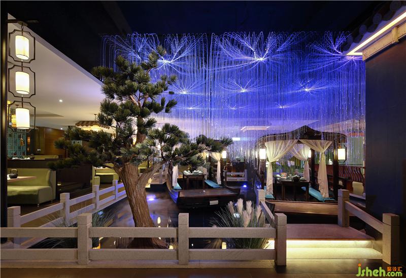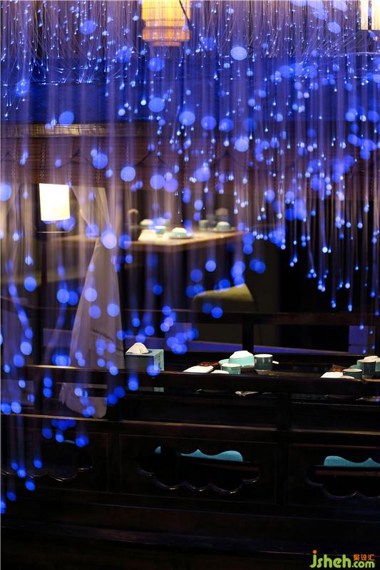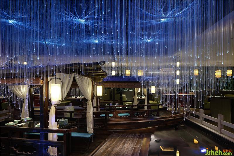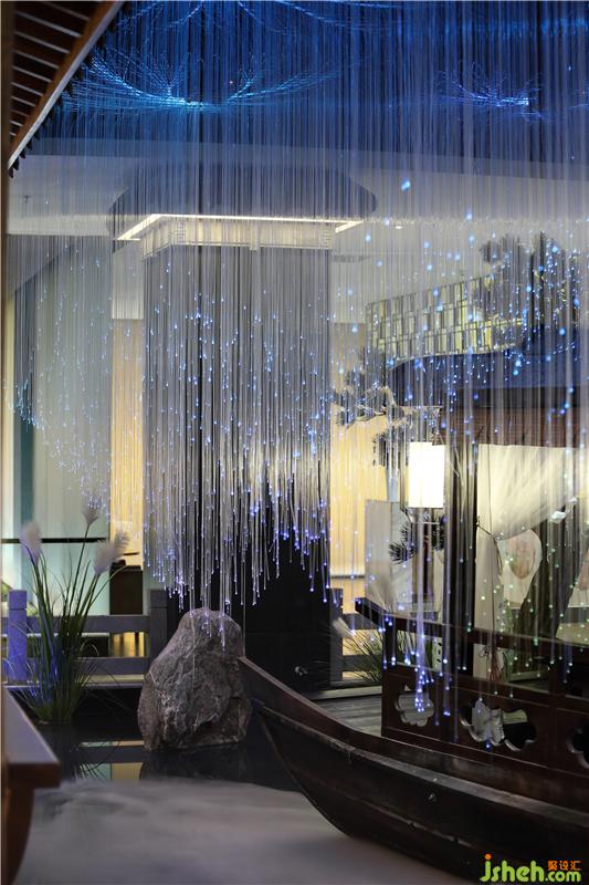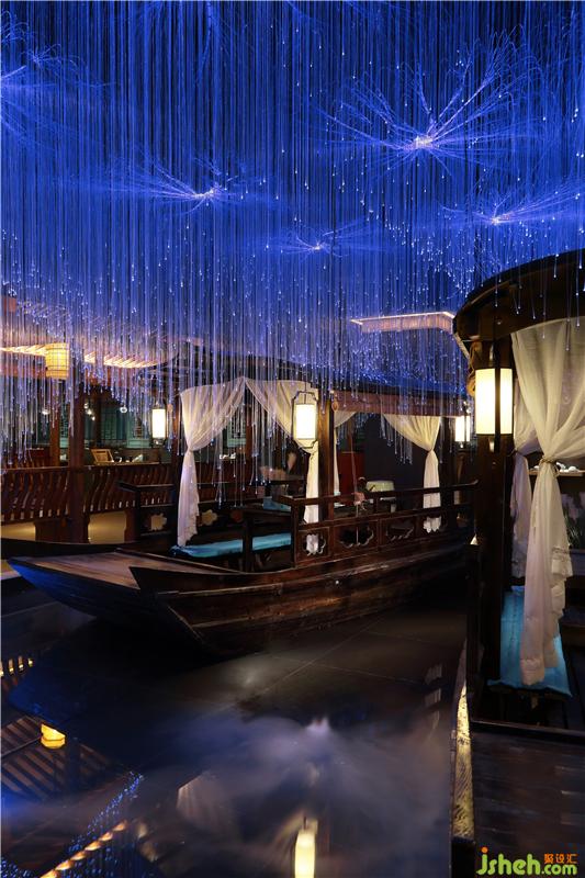 二层大面积采用了光纤灯,起伏连成一片,形成感官上的幻觉——星空。此时,泛舟江上或驻足岸边,仰望星空,繁星点点,追溯一种向往的生活体验。