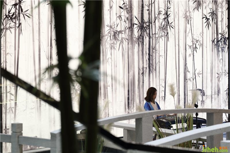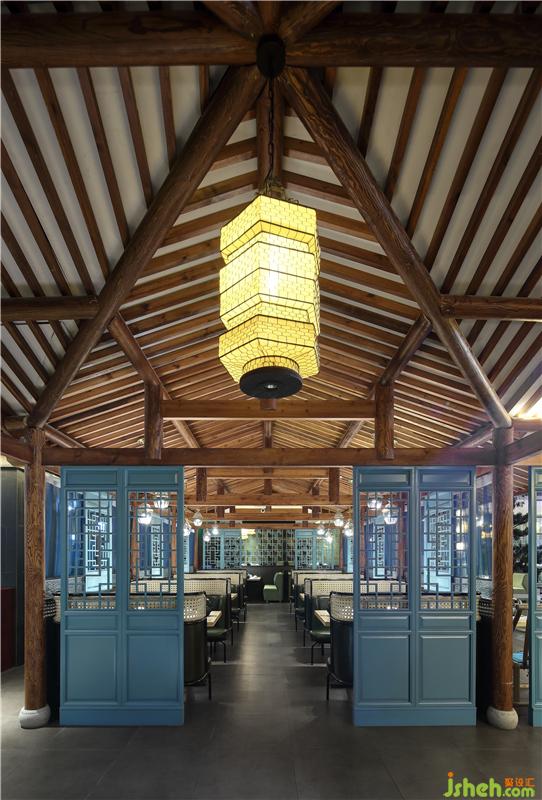 自然是空间转换,人与人之间交流的最好的媒介。由室外的喧嚣穿越到高耸、葱郁的林间,光影斑驳,水声潺潺,丝竹入耳,氛围的塑造让就餐的心情更加放松愉悦。