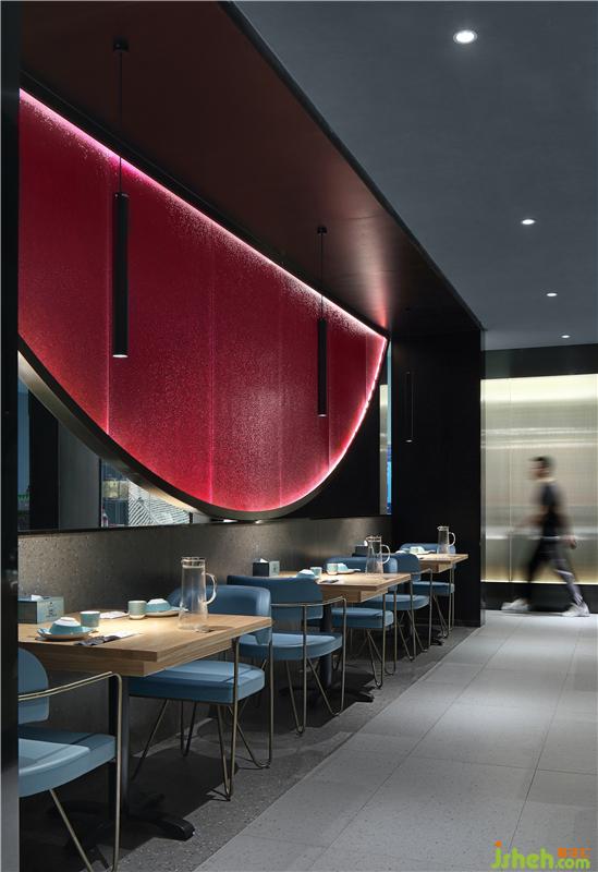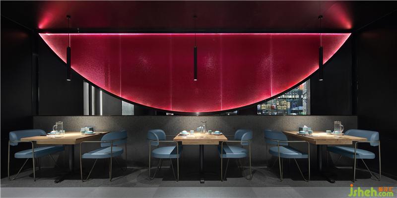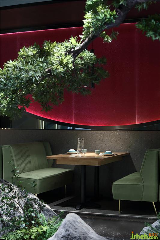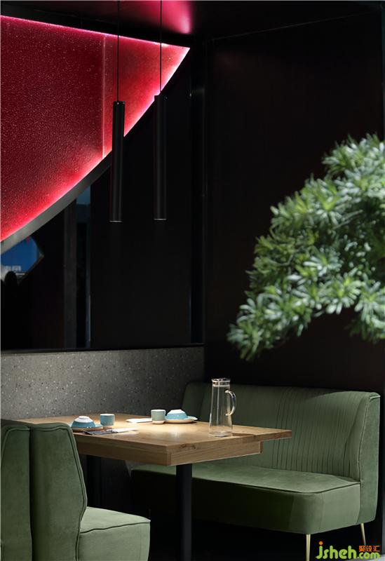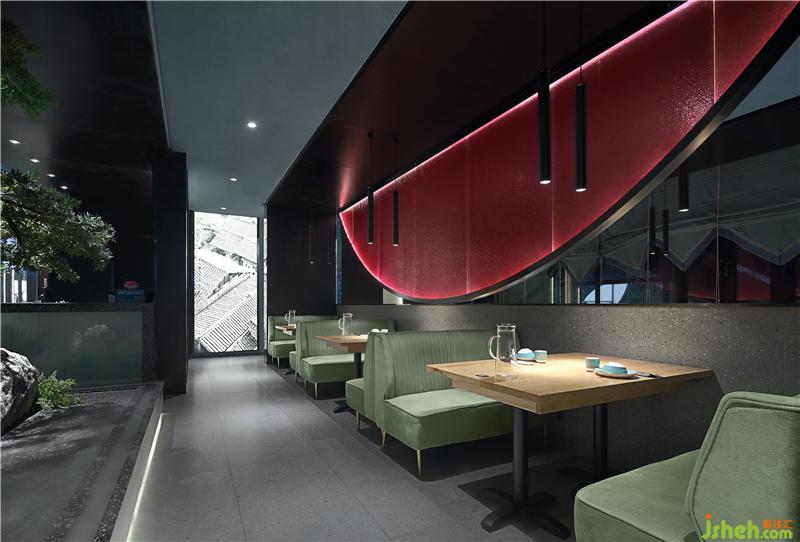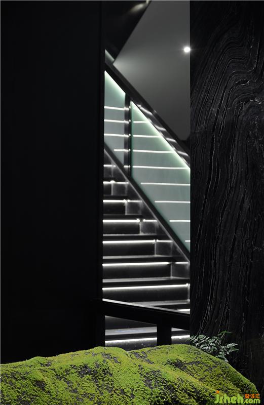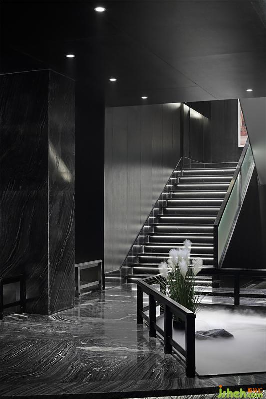 设计师在渝乡辣婆婆空间塑造上,也充分考虑了重庆山水的特色。入口的小桥引渡,采用了大理石材质,这是设计师有意弱化了“险”的特点,放大了自然的意境之美,从而将客户带入到放松的状态中。漫步过水雾缭绕的小桥,看前方点点明亮,上楼梯,会是怎样一副图景?