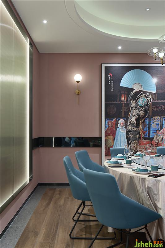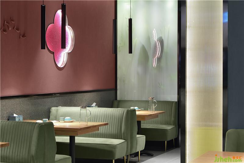 渝乡辣婆婆北京概念店,延续了2018年店面升级改造中的莫兰迪色系。但是,相比石家庄店,北京店不仅加深了地域文化与视觉符号的渲染,更是在空间整体形象上进行了重塑。