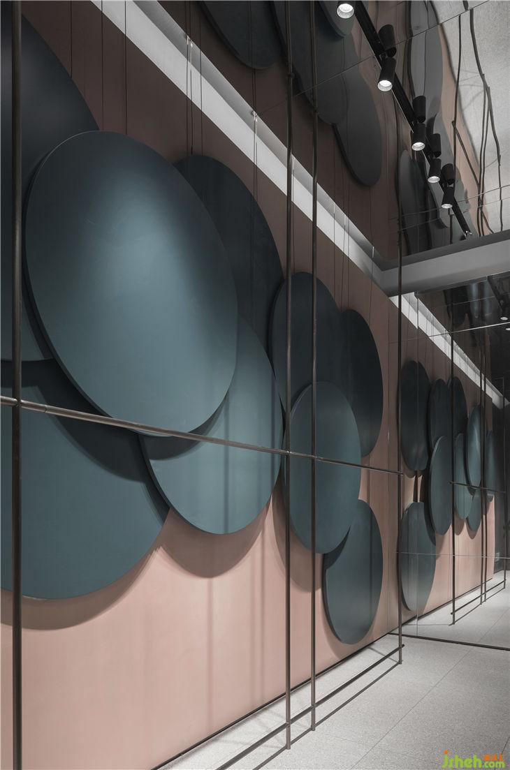 In order to achieve visually new cognitive surprises and commercial interest in space, mirror metal is used locally in the smallpox to extend and transform in the horizontal and vertical spaces to obtain a new visual experience;