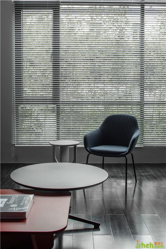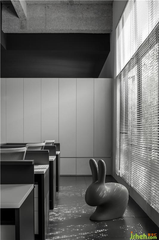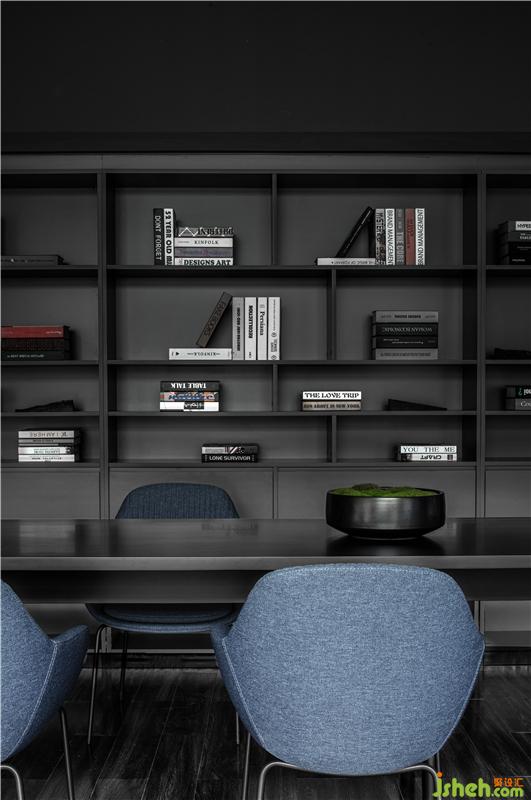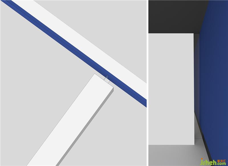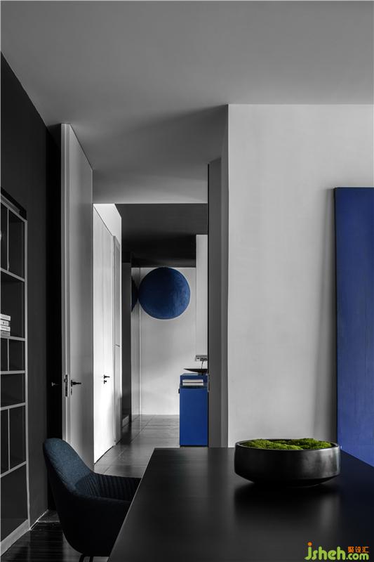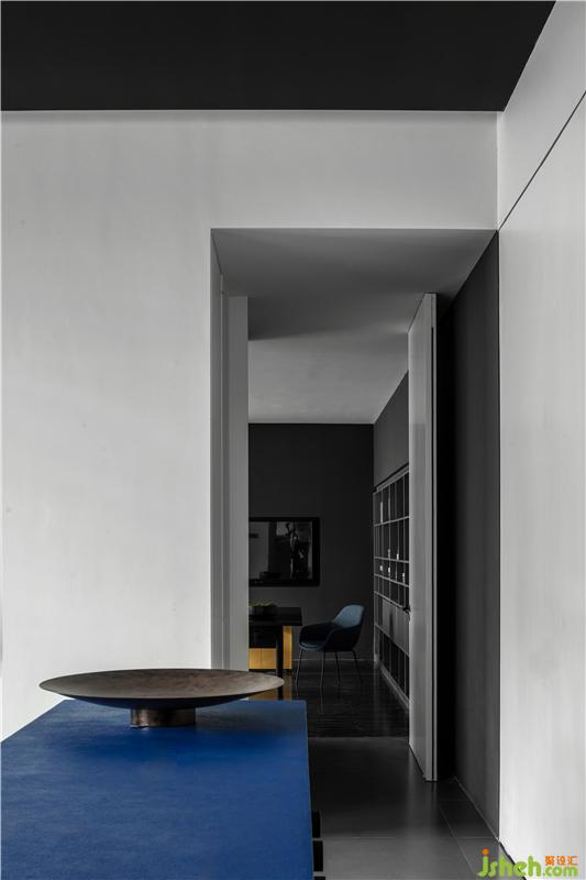 进入总经理办公室的空间过渡,从一个空间到另一个空间用深色墙面暗示完成状态的过渡;