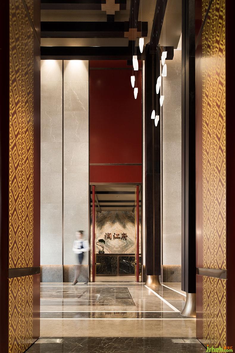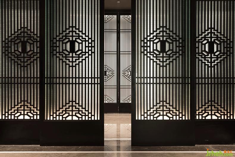 空间序列的表达上采用了中轴线序列渐进方式与园林的行游动线结合。中轴线的对称序列关系,经常被引申为儒家思想的礼序关系,及皇家的高大壮美,与宗教的肃穆与庄严也有暗合,而我更愿意去看到这种序列关系带来的安静,中正和韵律感。室内设计师而园林的行望游居动线,则让空间的进入感与空间层次感愈加丰富灵动。