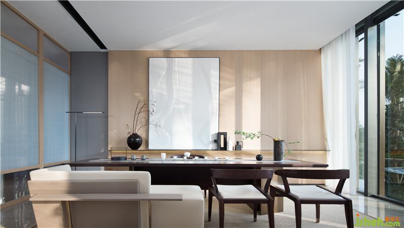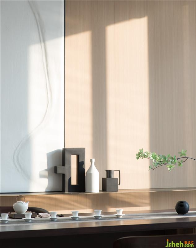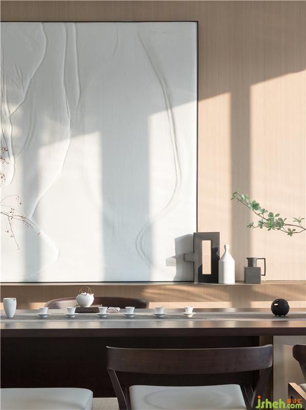 屏风模糊了空间界限,茶室似隔似合,艺术画的选择以留白注解,若隐若现。器皿选色素雅,插花艺术更是展现了不一样的空间诗意美学。文人墨客,清茶一杯,谈吐风雅;芸芸众生,一茗在手,静谧中返观自心。