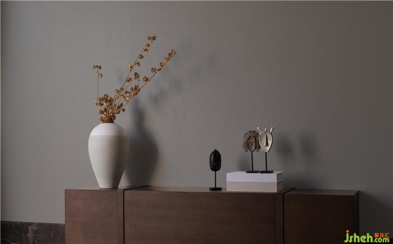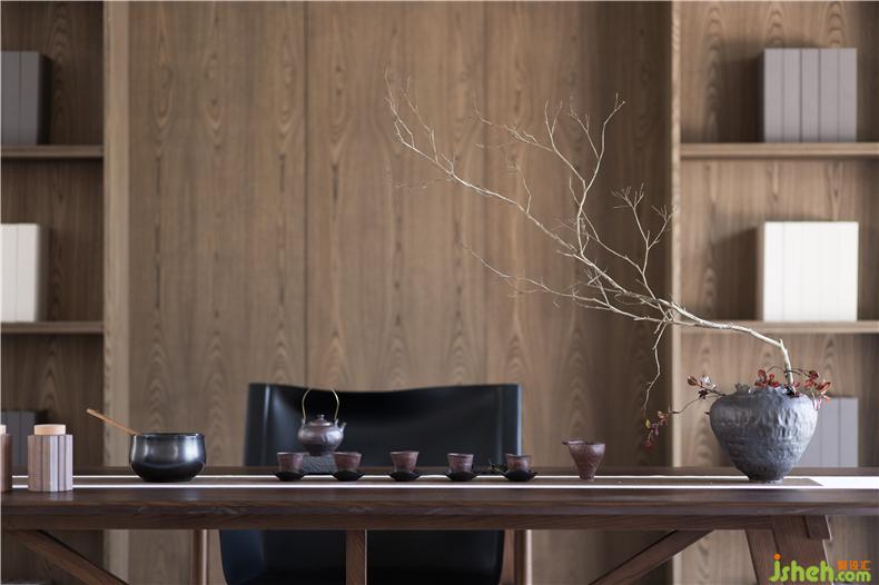家具以朴实的实木色与庄严的深色皮为主,穿插着金属的灯具,表现出低调的奢华感。