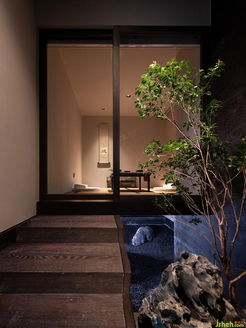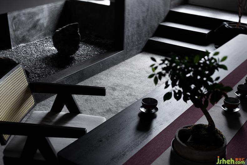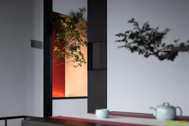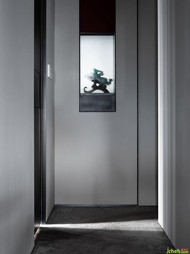 珠宝会所入门处我意欲谋求深山幽谷外出旷谷的体感,越往内走越有光线明亮的趋势。东向南向采光良好,为了营造良好日然光线在空间明暗变化的层次,我以门洞、水池(悬空下部)、壁龛、橱窗、等方式把自然光进行塑造,就效果来看,自然光的塑造确实令现场更灵动。池景有水与无水效果相差悬殊,壁龛的自然光由于是南向并无直射阳光,必须关上门才能弱弱体会。