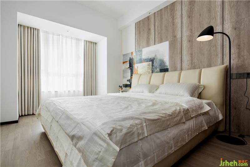 客房是安静的,但也不失艺术的优雅。用浅灰壁布做床背景来调和空间的层次。