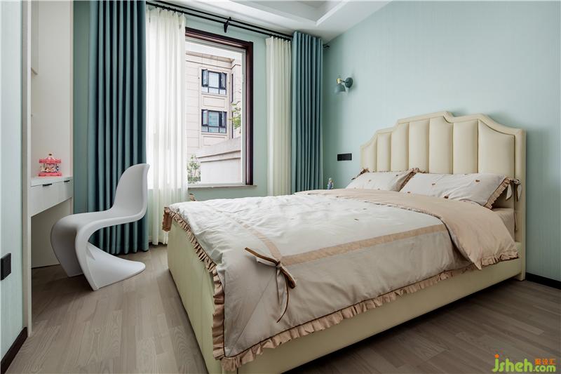 妹妹房间清醒活泼,仿佛春天的田野,专为百灵鸟在这里歌唱。房间其实不大,书桌的位置是“借”了隔壁大卫生间的一块。但我们仍然希望空间是绽放的,因为要让心灵自由飞翔。