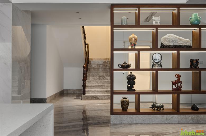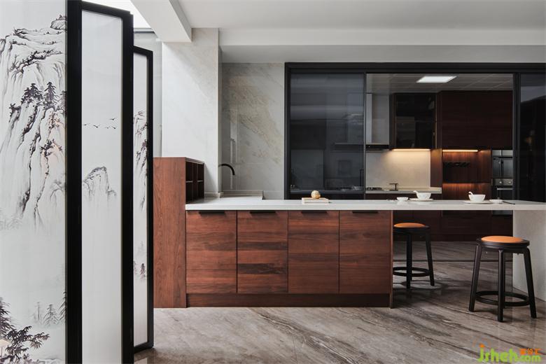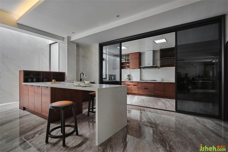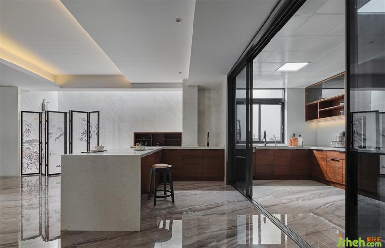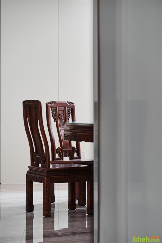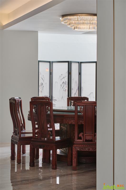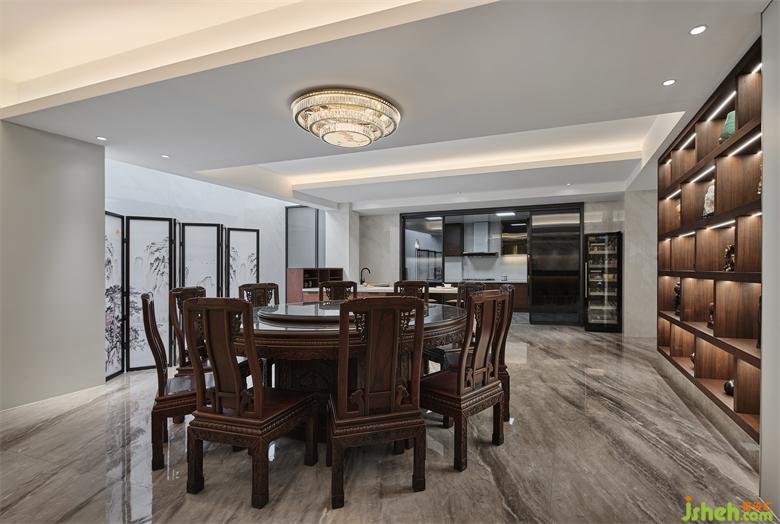 餐厅南面白色墙板设计了酒窖的隐藏门