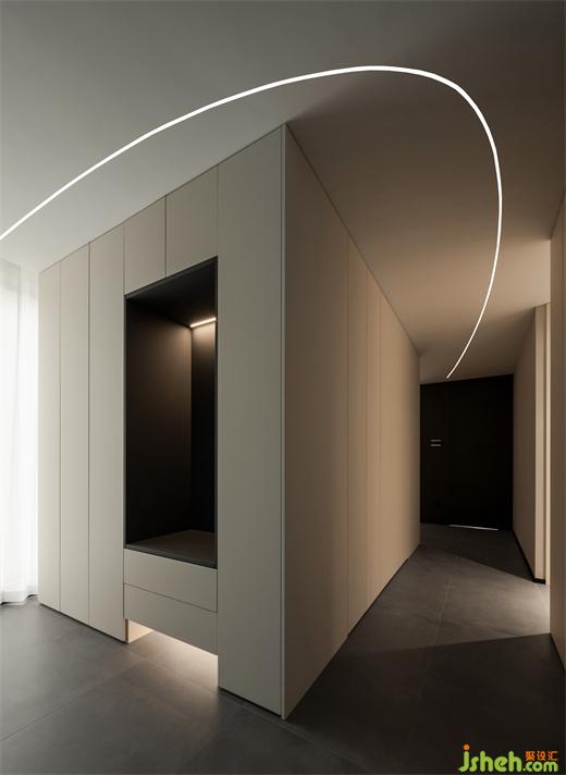 我们将艺术住宅设计的隔墙进行了拆分重组,进门走道为轴线,左面为起居社交,右面为私密生活。