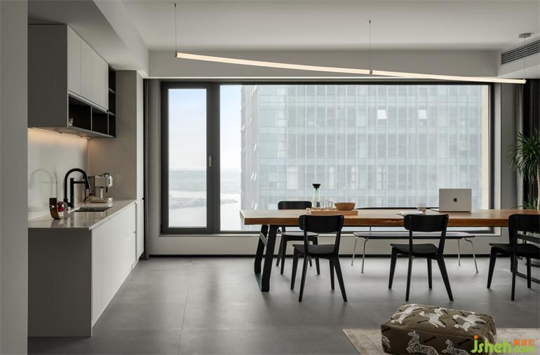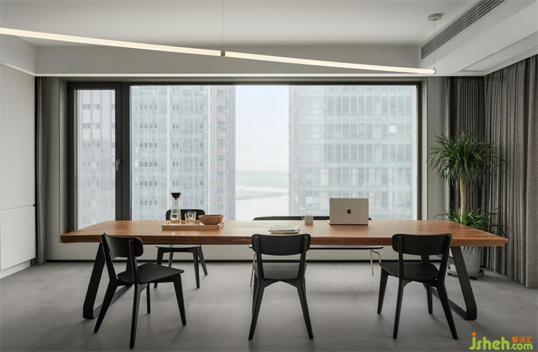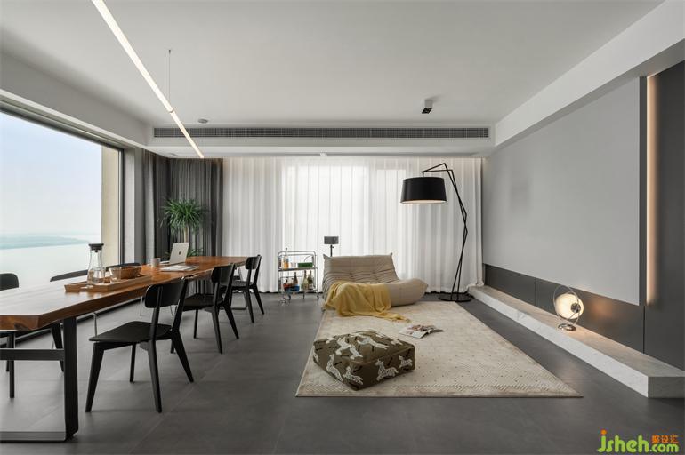 The family social space is structurally left blank. The lazy sofa is "dot" and the long table is "stroke", which implies an oriental artistic conception. Abandon the traditional sofa arrangement in the living room, and replace it with caterpillars, lazy people and cushions freely assembled on the carpet to give the building soft language and make it adapt to the communication with people.