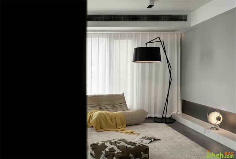 家庭社交空间结构性留白,懒人沙发为“点”,长桌为“划”,点划之间暗含东方意境。艺术住宅设计抛弃掉传统客厅端坐的沙发排列,代之以自由组合于地毯之上的毛毛虫懒人靠与软垫,给予建筑柔软的语言并让其适应与人之间的交流。