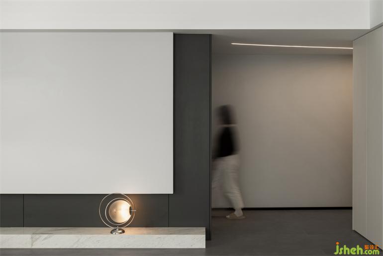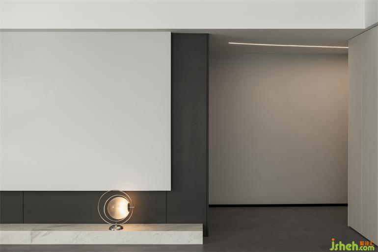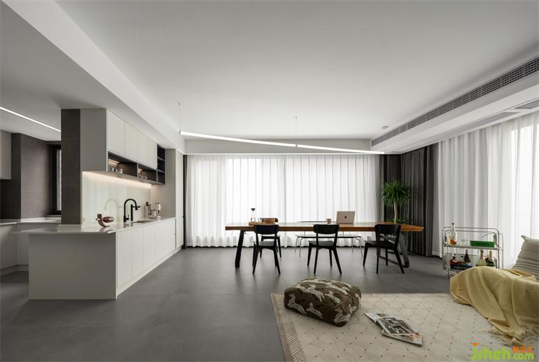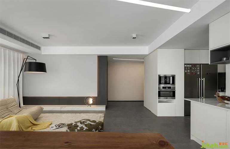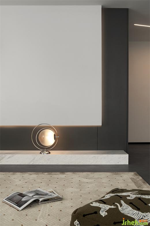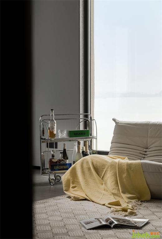 艺术住宅设计极窄边框的大落地玻璃把江景收入“画框”,室内外的互动让居家美学呈现出自然的艺术。大横厅的顶上斜吊一道光柱,从厨房门口延伸至长桌尽头。艺术住宅设计水泥灰的地砖铺陈出极简精致生活的底色。“毛毛虫”沙发背后矗立的投影仪代替电视机为生活增添了欢乐的剧情。
