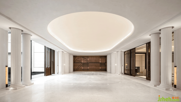 和光同尘,借势围合消弭负一层的闭塞感。开敞尺度承继上海腔调,法式典雅讲究格局而注重细节,视界独到,方能傲而不骄,分寸有度。