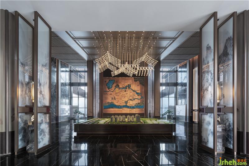 J&A通过创意进入到东方千年文化经典的源头,把设计命题打开,将历史碎化的记忆与年轻化融合,提炼沈阳故宫的“檐”、“水”、“镂”、“刻”的元素,并以新科技、新手法、新材料的先进手段,让空间因厚实底蕴的年轻化再造而焕发出更加鲜活的魅力。售楼处设计