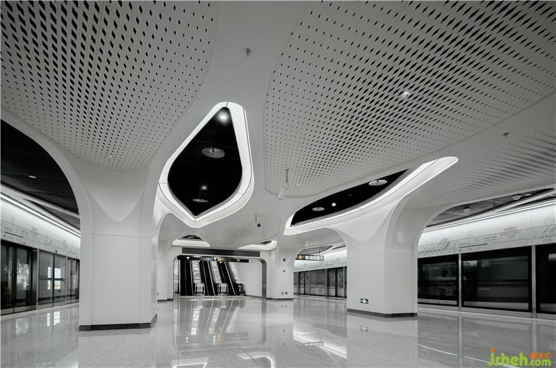 纯净而谦逊的色彩与丰富明亮的内部空间带来的双重性体验。室内天花造型参考了环球中心的流动性和延续性,不仅与室外建筑环境形成了巧妙的联合,还以一种瞩目的方式展示出了自身与众不同的艺术气质。