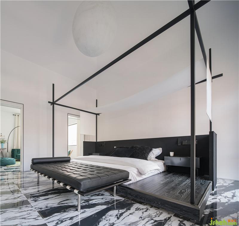 主卧更是黑白分明、干净有力,简洁清晰的线条,精致细腻的工艺收口,别墅装饰功能性与实用性兼具,展现出极具想象的视觉效果。布满镜子的更衣间不仅提升了空间感,也让整个空间更加有趣。