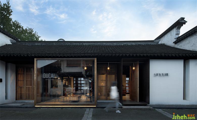 艺术空间和咖啡区的交接处,有一个狭长的新浇混凝土通道,文集设计内外切换给人强烈的“穿越”感。下沉式的江南庭院风雅别致,置身其中,偷得浮生半日闲。