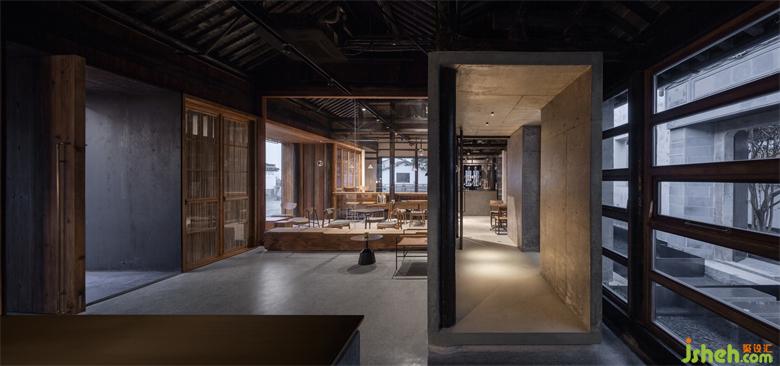 At itsoriginal site is atypical traditional“three-entry” courtyard, which is lower inthe front and higher in the back with aconservative style. The oldarchitecture isclosed in itssurrounding, withrelatively poor indoor lighting andsafety hazards hidden in itsnarrow corridor. Aftertransformation, theprimitive simplicity and elegance of thissouthern-style courtyard has beenpreserved—white walls and black tiles are stillthere and water flows beneath a little bridge,while more open space has been added. Moderndesign elementsincluding iron rust plate, simplefloor-to-ceiling glass and uniqueguidance system have endowed this ancientmansion with newvitality.