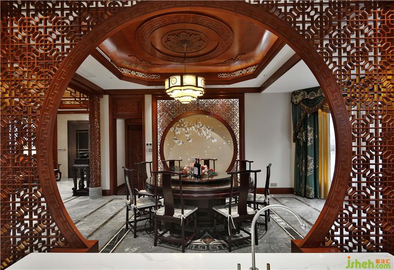 大而不空、厚而不重,轻描淡写地几笔点缀,犹如山间的松叶洒落在葱郁的林间,画中有画,景中有景,带给一家人舒适优雅的用餐环境。别墅装饰