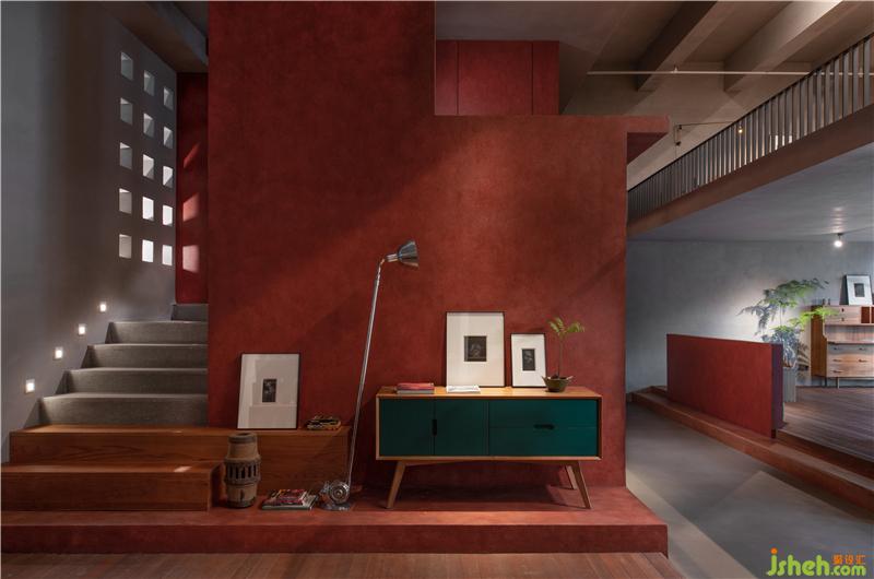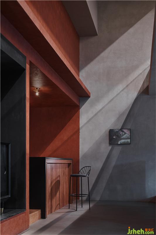 所以,建筑空间在满足基本需求的前提下,并不需要过多的装饰,这些装饰层面的内容更像是资本积累过剩后所产生的不良反应。而这种反应,即是人性,亦无论对错。所以,在整个建筑空间的规划中,几乎没有装饰意图的明显体现,所有的规划、层次、氛围的营造都依托于实际空间使用的逻辑而展开。建筑语言成为了主体,所有的材质也倾向于基础化、建筑化,就连整个空间中最为抢眼的红色,也是基于红砖所产生的视觉转化,而这一转化的意图也十分简单,在本身就不够宽大的空间里,我并不希望有过多的线条去破坏这一空间的逻辑,我希望它更加的简单与纯粹。
