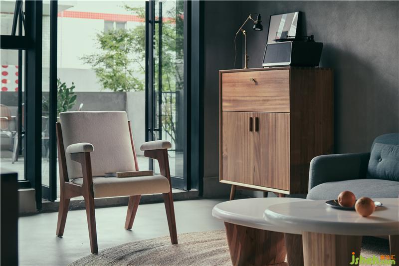 而“野笙”的家具便是这一思考的最好诠释。原木,成为了家具构成中的主要材质,它温和且易于各种结构的塑造。同时,其温润的气质,与理性的建筑空间得以相互调和。加以灯光与自然采光的恰到好处,于是,空间不再冰冷,但又不过份的柔软。