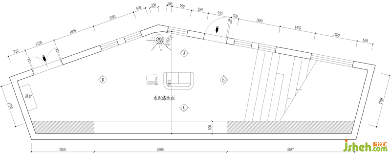 原建筑是一个位于员工食堂旁极其狭小且异形的空间。原本只是建筑修建中,遗留下来的一块灰色地带。整个建筑空间占地投影面积约30平方米,层高接近六米,立体空间也呈现出毫无逻辑的变异漏斗形状。通风采光也因为其建筑本身的原因,受到了极大的影响。这无疑为设计的思考带来了不小的阻力。