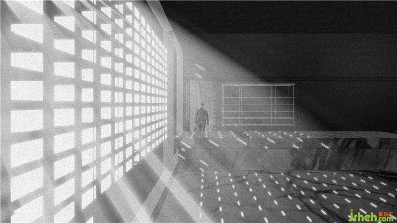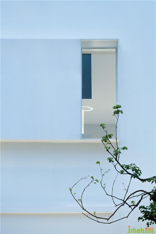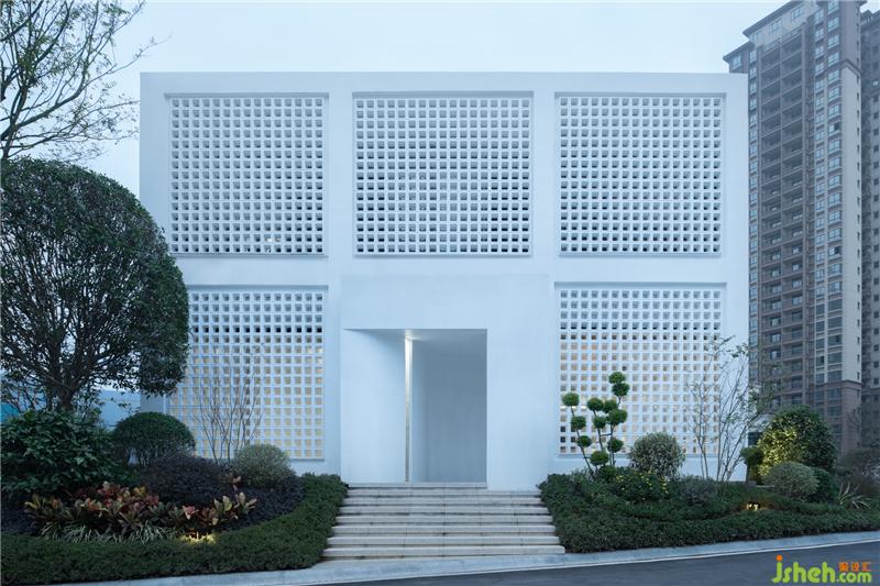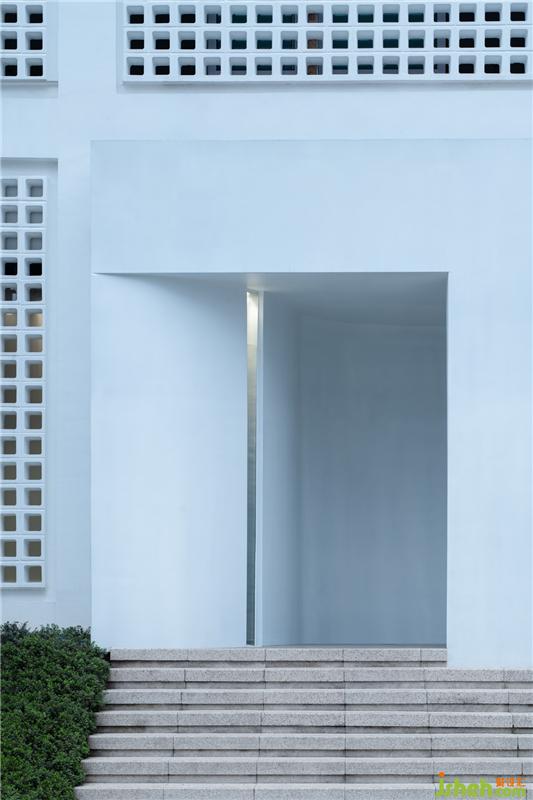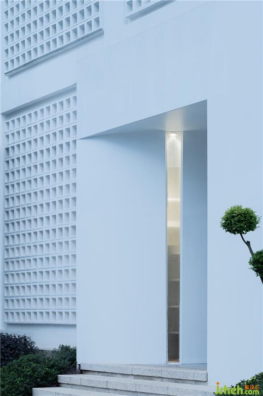 外观上相对封闭的白色立方体是它的形式,墙面的孔洞幽微地向内或向外渗透着,试探着。