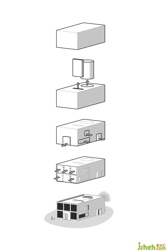立方体既是一个单一且纯粹的几何形体,也是现代理性觉醒之后,建筑最原初的形态。它做为一个空间体块,同时具备有完美的构建与被构建的双向能力,它可以被理解为最小的空间单位,也可以被无限的立方体空间继续细分下去,在方盒之中,一种现代秩序的象征性空间表达正在等待被输出。
