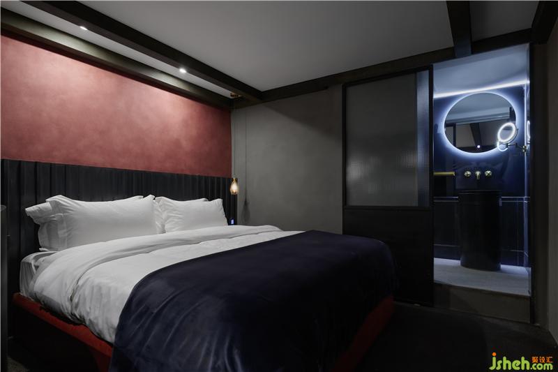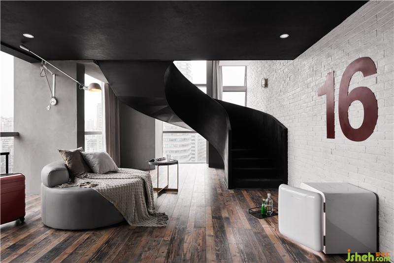 酒店就在这样一个大环境之中,隐藏于楼宇之间。它原始的建筑状况跟大多数的loft公寓一样,虽然有较为充裕的层高关系,但整体空间仍然狭小。再加上酒店部分只占整层楼的3/5面积,所以,在处理空间关系上,我们必须解决酒店在视觉与空间使用动线上的独立性。以此帮助酒店呈现出更加完整的视觉与体验效果。好在较高的楼层关系给整个建筑创造了良好且充足的日照条件,这为后期的效果呈现给予了一定的帮助。