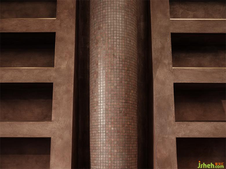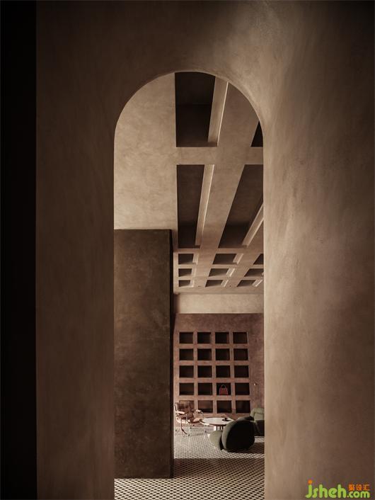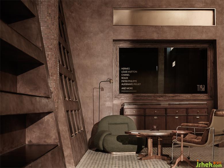在质感的表达上,我一如既往的偏爱着最为基础的材质关系。原木、水洗石、涂料、红砖再次成为了空间的主角。这无疑是最为纯粹的表达形式。但在迪佳的价值输出方面,我们希望较之以往的同类作品,更具传统价值的认知感受。所以,奢侈品商店设计在整体的设计中,我们融入了适度的石材、短绒、拼花、金属等材质。特别是在软装陈设的选择上,价值感进一步提升。精致的做工、考究的五金、以及稀缺的面料,都为品质的保证奠定了基础。
