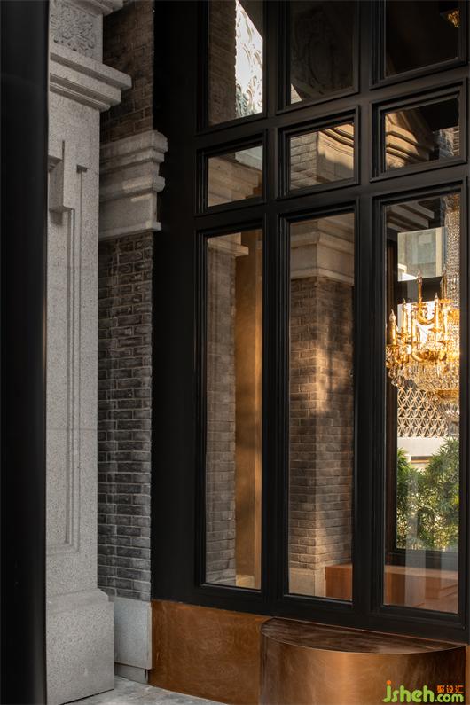 奢侈品商店设计依托于可利用的建筑外摆区空间,我们在保证原建筑不受破坏的前提下,进行了大胆的外部空间拓展与规划。在通过一系列建筑及景观化的设计干预后,我们不仅为原建筑创造了可供休息、停留、甚至是遮风避雨的外摆区域。同时,亦从引流的角度,还为该物业创建了一个视觉中心,即一个与原建筑完美共生的钢结构玻璃小屋。在玻璃小屋内,我们运用蒙太奇的处理手法,大胆且夸张的放置了一盏超大的复古水晶吊灯,这盏吊灯几乎填满整个小屋,在灯光的加持下,尤其引人瞩目。