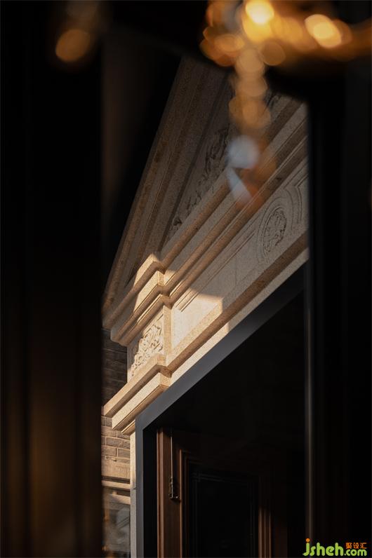 所以,室内空间的规划,是依托于消费动线与品牌认知过程而展开的构思逻辑。首先,我们用一个狭长的门廊通道将原空间分为了左右两个空间物理关系。并在这个黑色立方体的末端设置了一面做旧的铜板墙体,奢侈品商店设计设置这种色彩、质感的目的,除了可以形成一个引导进入的视觉关系外,其表面悬浮的壹臻logo,也是在通过某种心理暗示告诉到访的客人,“我”的名字叫——壹臻。