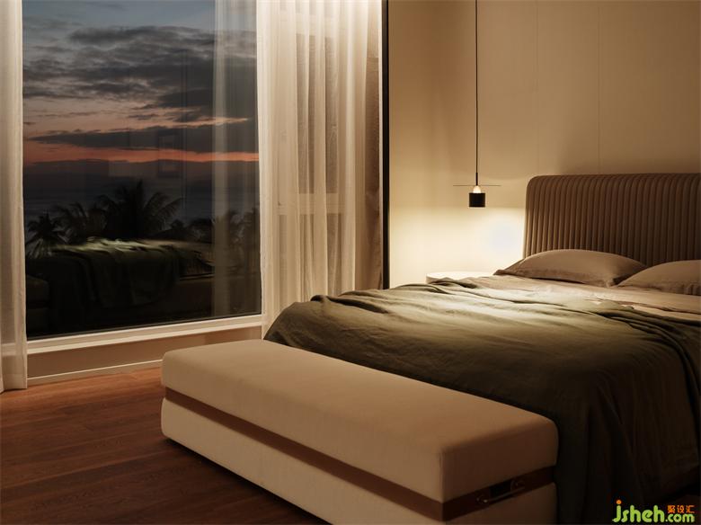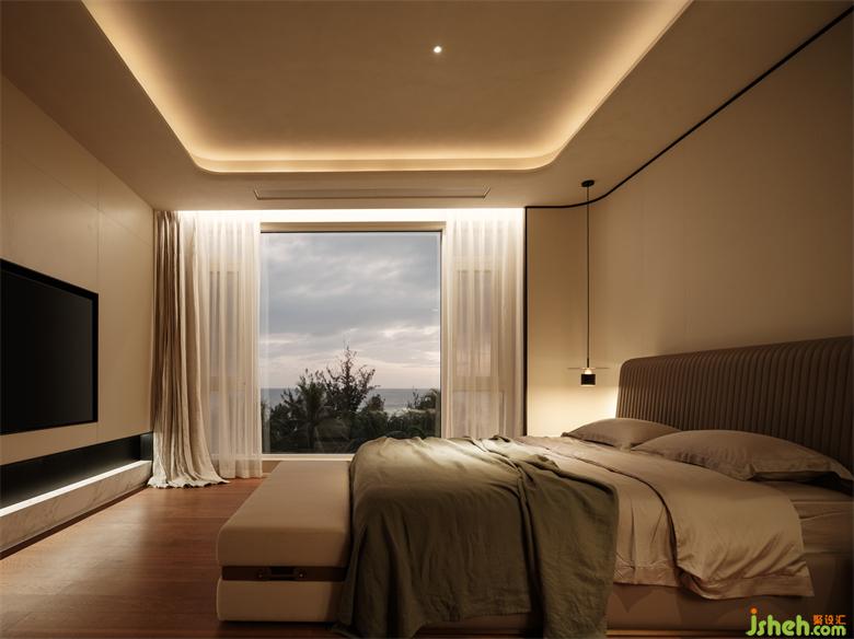 如果说,一层空间作为建筑入户的首要部分,那么它所要代表的,既是整个建筑体系中,最具代表性的感知输出。所以整个客厅的状态便是开放的,自由的感受。三亚度假别墅设计阳光将肆无忌惮的充斥着房间,而海风摇曳着椰树,成为空间画面的一部分。同时,我们将原本设置在一层的厨房及餐厅空间置换到了负一层,而原有的空间,则被细分为了老人房、工人房、以及客房的功能。它无疑是平和的、适度开放的状态。所以,这不仅保证了客人的接待,也保证了老人、工人及客人行动的便利性,和舒适性等问题。