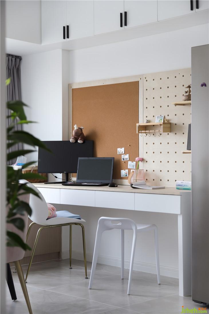 > 楼梯空间做玄关,书房餐厅共享,看小复式的大空间