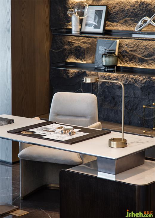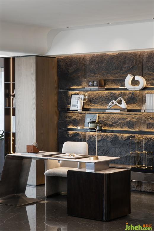 一等之胸襟,方有一等之思想,书房之气场映照着主人的胸襟气度。郑州豪宅设计师大胆引用大面积粗犷石质,“虽然在屋里,自有白云知”,把那飞舞的华章与喷薄的文思引到案头与心间,以至一拳知天地,顽石有乾坤。