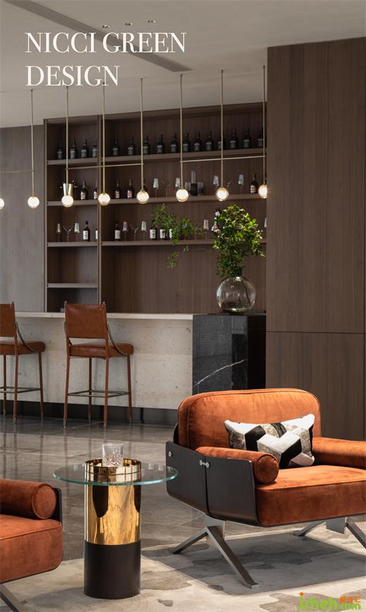 Nicci Green设计的菲齐吊坠在水吧区仿佛点燃星光,西安会所设计把酒柜的名酒藏品照得晶莹剔透,此时,酒保从后厨出现,为客人呈上符合其心境的特调。