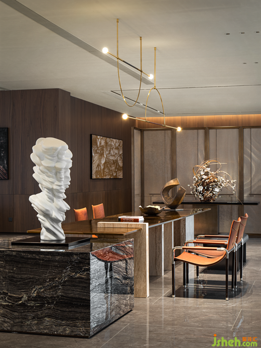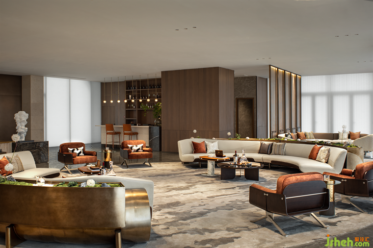 带手工缝制马鞍皮革曲线的丽娃休闲椅,卡哈瓦咖啡桌,萨凡纳的鲈鱼灯,经典的家具与灯饰名字一旦说出,西安会所设计犹如在空间中施展魔法。