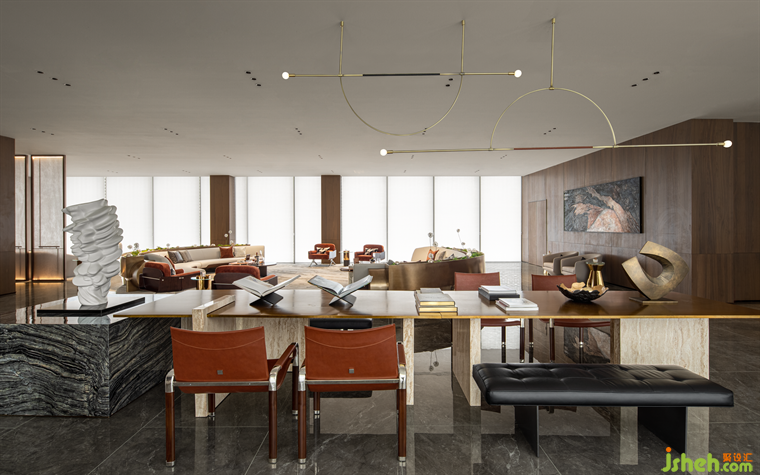 沙发来自Jorge Zalszupin经典设计,西安会所设计以几何线条和有机形状为特征,结合明确的比例,优美的线条和经典的细节,超越时间,已然成为永恒。