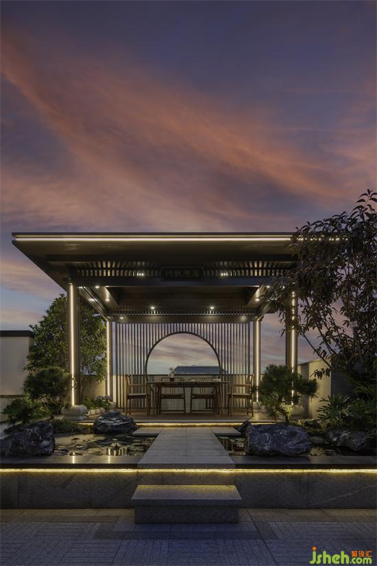 棋牌室的设计深谙居住者的娱乐爱好和审美意趣在满足功能需求的基础上用诗意诠释了别具一格的艺术品味中式风格棋牌桌、山水画屏风一簇红叶生于水墨之间为空间增加了奢雅、舒适、美学的专属特性