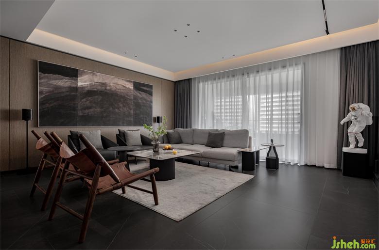 客厅外的阳台打造成休闲茶室,原本空旷的区域瞬间转换为一处避世远方,空间也因此变的多元生动起来。