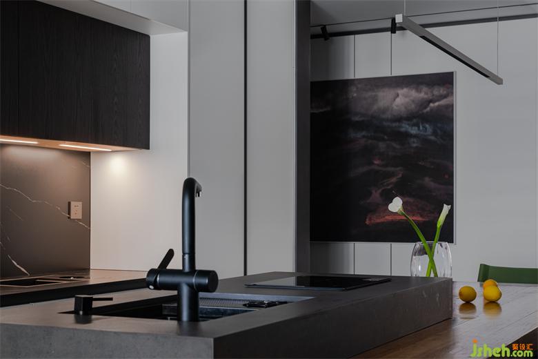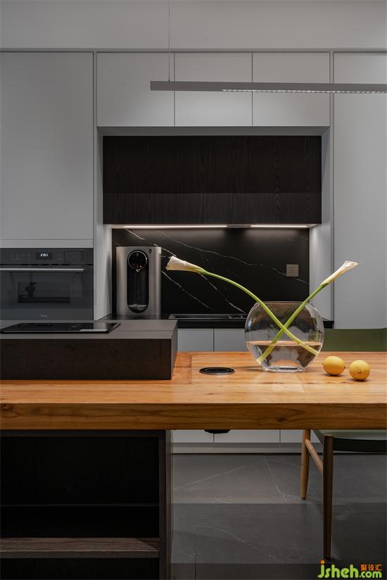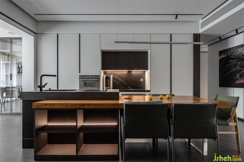 经过改造的空间,布局更为清晰,空间关系层层递进,更有章法。业主热爱生活,喜爱美食,结合生活习惯和使用需求,我们为业主打造了中、西餐厅两块区域,丽雅龙城住宅设计用圆与线诠释传统与现代的平衡。