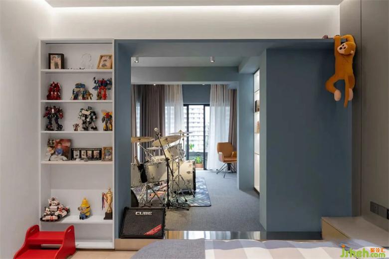 周全的设计建立在对业主生活的体察上,占据阳台的一部分融入卧室,丽雅龙城住宅设计用蓝色盒子点亮少年的梦想,与休息区域动静结合,色彩的搭配碰撞出蓬勃的活力。