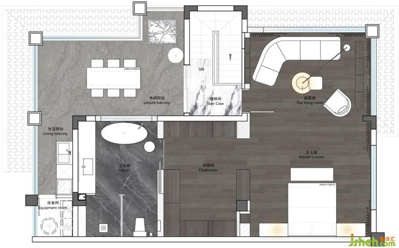 3、三楼整个空间为主卧套房,配备宽裕的起居区、衣帽间、卫生间,功能齐全,舒适有调