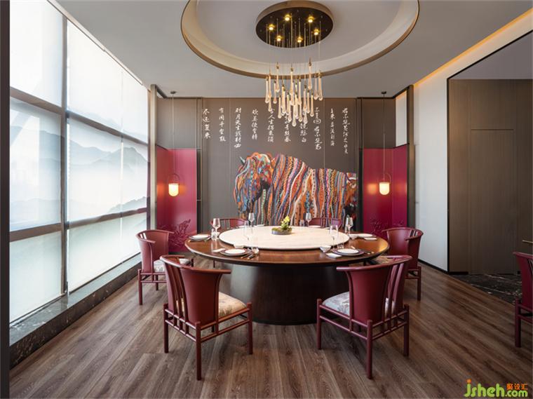 The Chinese value harmony between man and nature. Wine is endowed with beauty. This is the unity of man and nature and the unity of nature and self. The design of Wine Hall perfectly interprets the poem that life must be happy, and don't make the golden cup empty to month. On the wall painting, the designer hand-painted the image of the horse with modern oil painting techniques, and supplemented by the furniture of leather material, echoing the grand scene of Libai’s poem -Invitation toWine. People, feelings and scenery blend into one, achieving the far-reaching unity of nature and man.