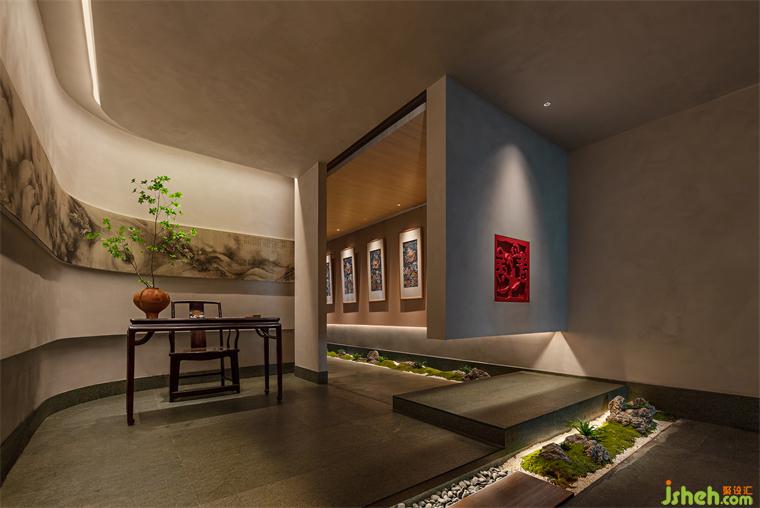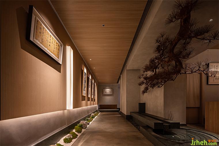 穿行于松枝竹影间,沿途的砂石敷沙与青石苍苔错落分布,深圳晴舒料理设计构成一幅枯山水庭院的空阔景致。木质墙面如泛黄的唐纸,光线穿过松枝漫射四内,在南宋画家陈容的长卷《九龙图》上留下浓淡有致的阴翳。更胜于浮世绘的刻板,《九龙图》的“云蒸雨飞、天垂海立”恢弘气势延伸了空间的内涵与向度,引发历史与精神的共鸣。