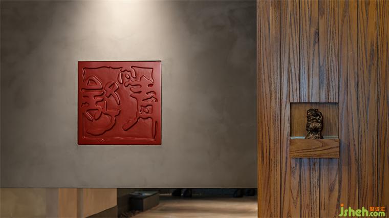 餐厅入口设计采用隐玄妙手法,通过机关开启门扉,翩然入目的即是以印章形式展现的“晴舒”二字,深圳晴舒料理设计师从篆刻艺术入手,在中国古典艺术与日式民族文化中找到共通之处,将之升华为含蓄委婉的东方写意之美,自细节处将澄明禅意洇染开来。