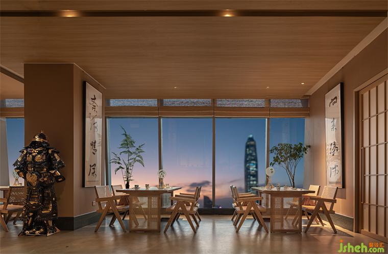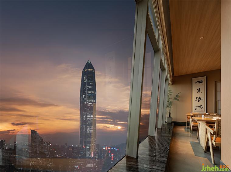 深入解读晴舒,除感受美食匠心外,更须精神与文化的双向奔赴。餐厅位于最繁华的皇岗商务中心皇庭V酒店53层,优越的地理位置可将城市夜景一览无余。深圳晴舒料理设计师借由巧妙分区,最大限度地将外景纳入室内,使食客或沉浸于板前灯火,或流连于窗外风物,在自然景物的表达与追述之间感受空间情绪的微妙变化。
